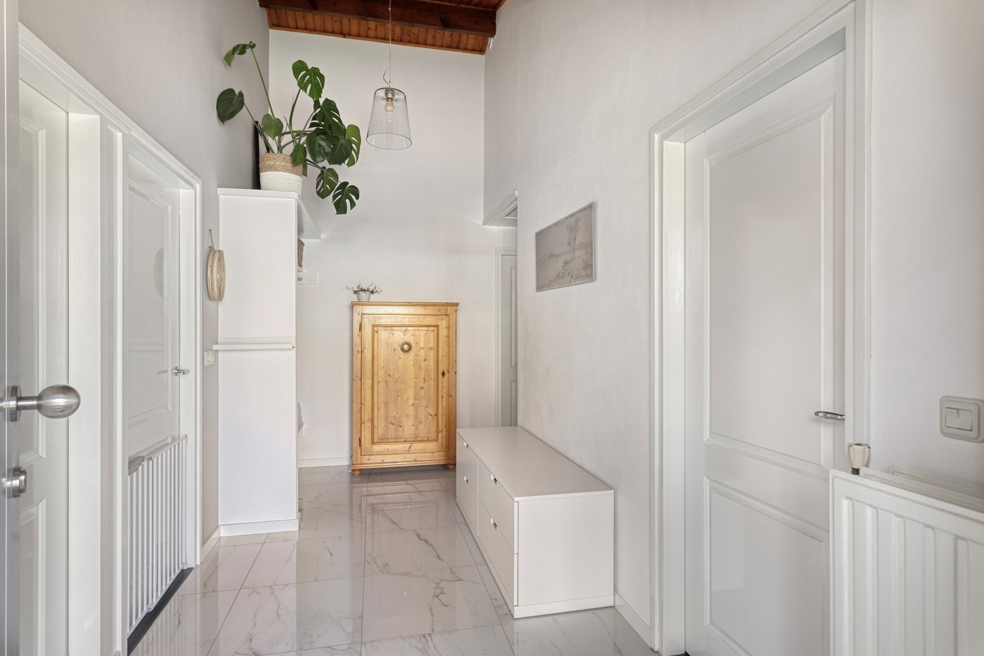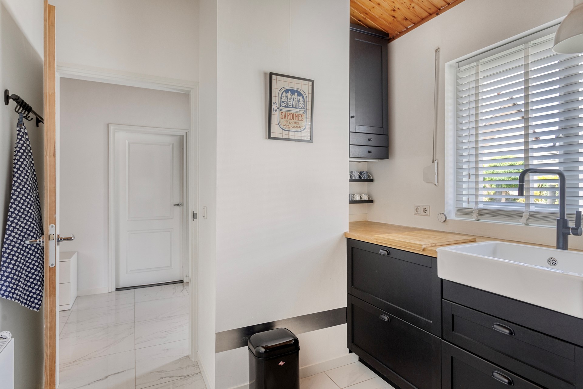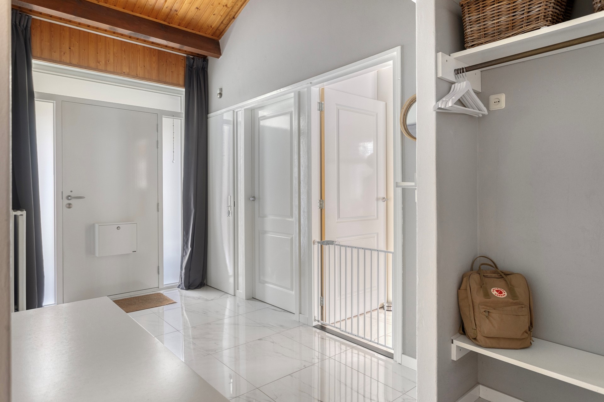 De gesloten keuken (2020) is stijlvol uitgevoerd en voorzien van hoogwaardige apparatuur, waaronder een Boretti inductiefornuis met twee elektrische ovens, een vaatwasser en koel-vriescombinatie (2024). De lichte keramische tegelvloer in hal, keuken en woonkamer versterkt het ruimtelijke gevoel en is praktisch in onderhoud.