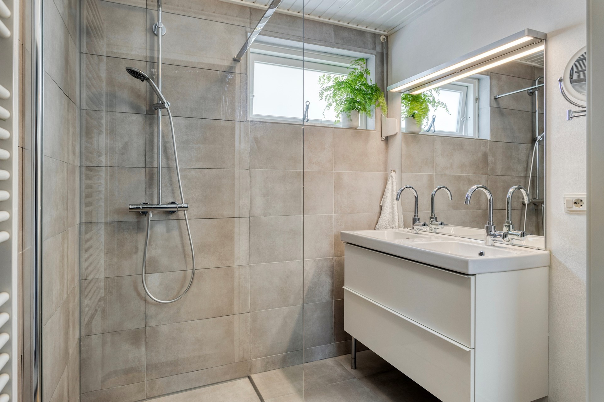 | Badkamervoorzieningen | Dubbele wastafel, Inloopdouche, Wastafelmeubel |